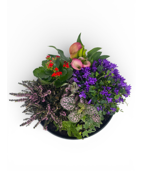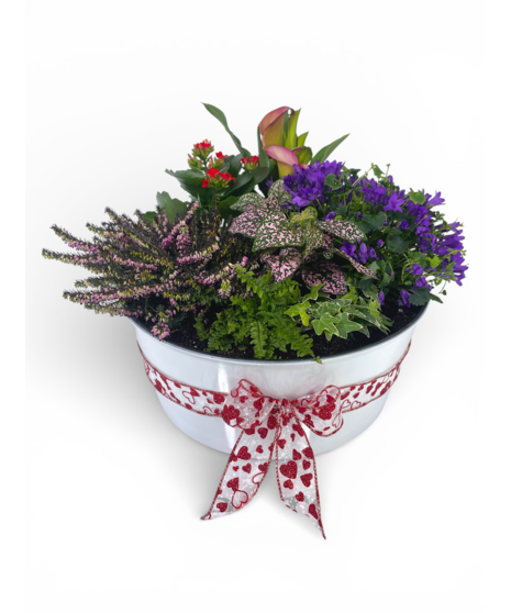 Share your love with Aphrodite's Garden! This combination of fern, ivy, campanula, calla lily, kalanchoe, heather, and polka dot plant makes the perfect Valentine! This lovely flowering garden comes in variety of colors and puts off a lovely fragrance! Approx. 13in tall and 12in wide.