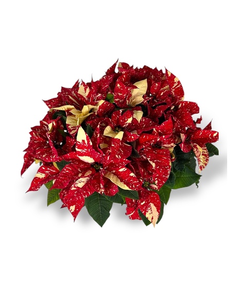 A very unique poinsettia wrapped in burlap. The beautiful variegated red and white leaves are sure to wow this season! Plants approximately 20 inches tall and 20 inches wide. Send something special with our Candy Cane Poinsettias!