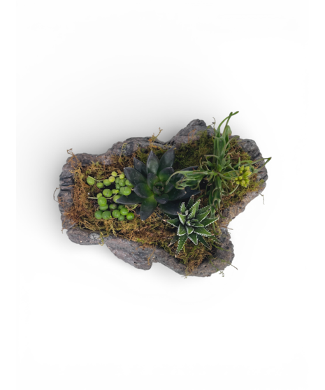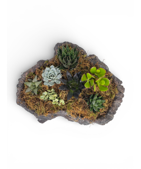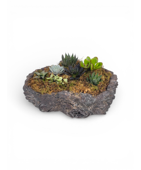 Contains easy-care succulents to bring some green beauty into your home. Planted in a brown bark ceramic planter. This gift will provide years of enjoyment with minimal care. Small planter contains 4 succulents. Large planter contains 7 succulents. Plants may vary.