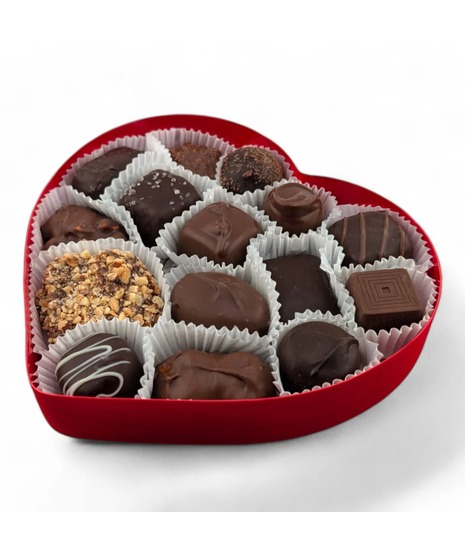 CUPID'S KISSES: Impress the most serious chocolate lover with a sweet, heart box for Valentine's Day curated by Cupid himself. Filled with festive red and white nonpareils, foiled hearts and lips, and a chocolate covered Oreo adorned with Valentine's decorations, this box presents a beautiful mix of milk and dark chocolate. Please note that the ribbon may differ from the picture.