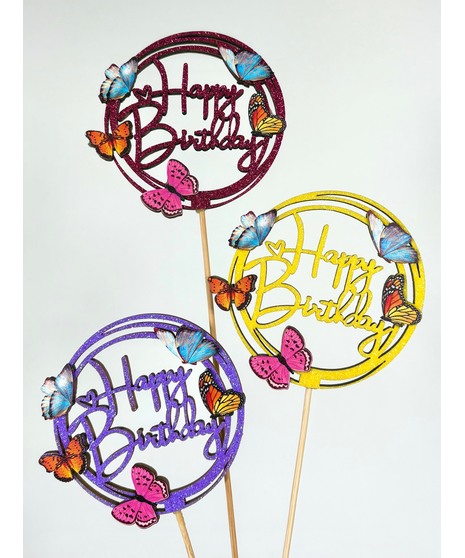 Add the final touch with our brightly colored glitter Happy Birthday picks made from wood! Color will vary.