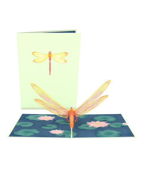 Dragonflies are thought to symbolize change, transformation, good luck, and prosperity, making the Dragonfly on Water Lily pop-up card ideal for someone embarking on their newest adventure. Give this special design to a loved one starting a new job, moving to a new city, welcoming a new baby, or embarking on their own unique journey. The beauty of this card literally leaps off the page, making it perfect for birthdays, anniversaries, graduations, Mother's Day, or "just because."